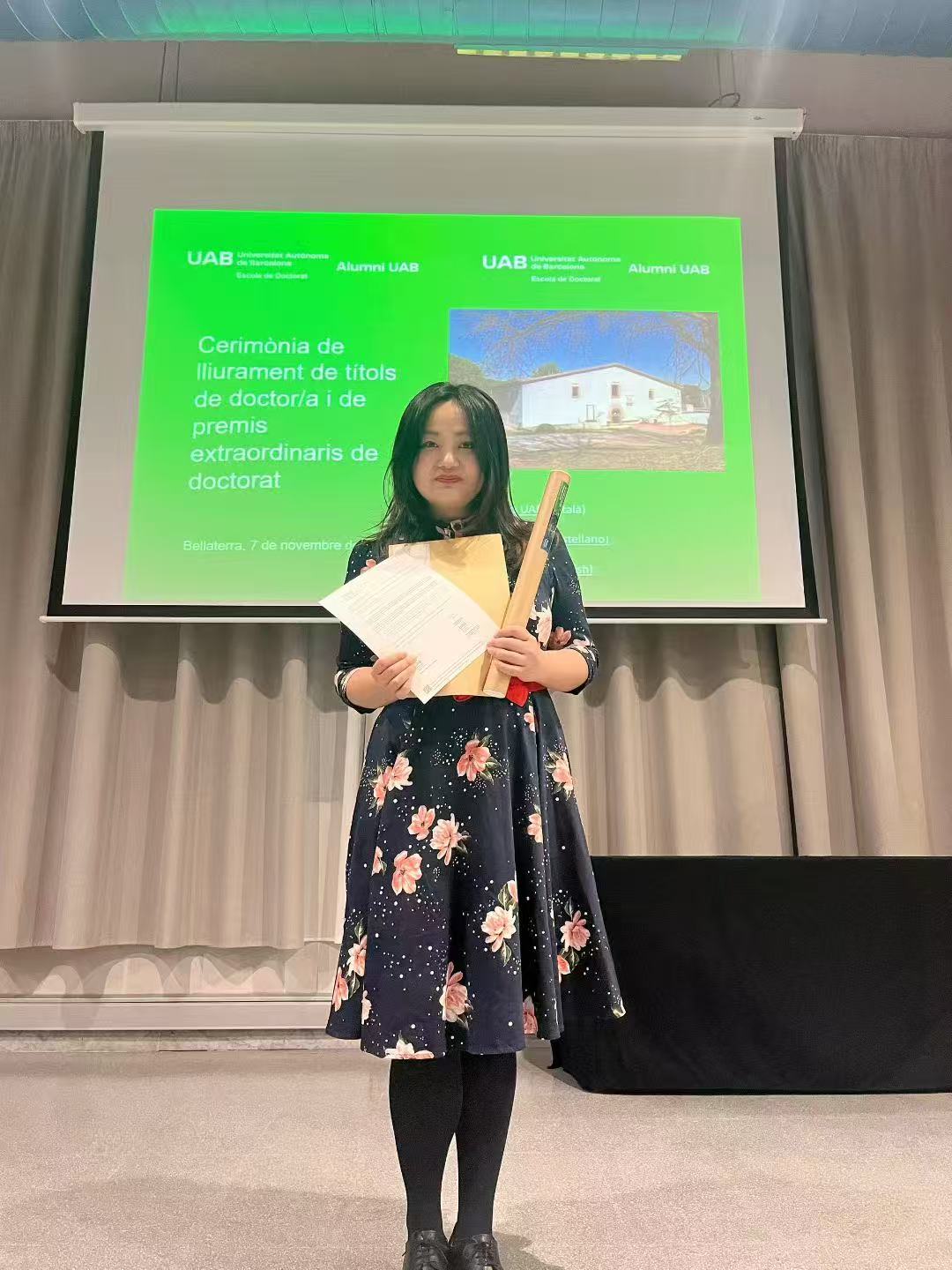 我院新进讲师卿胜蓝荣获巴塞罗那自治大学“博士学位特别荣誉奖”