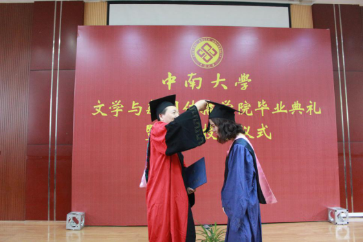 随后,现场毕业生举行谢师礼,诚挚表达了对辛勤付出的老师们的崇高敬意。在学位授予环节,院学位分委员会主席刘泽民教授一一为毕业研究生拨流苏授硕士学位;院学位分委员会白寅教授、阎真教授、刘青松教授、胡光华教授为本科毕业生拨流苏授予学士学位。一场毕业典礼为毕业生们在中南的求学岁月画上了一个圆满的句号。祝愿文新院2019届毕业生们前程似锦,芳华如歌。