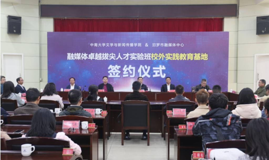 (我院与汨罗市融媒体中心合作建立校外实践教育基地签约现场)