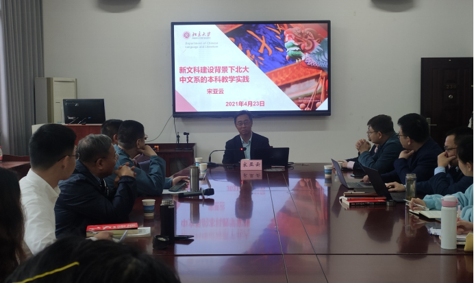 2021年4月23日上午,北京大学中文系副主任宋亚云老师作客文学与新闻传播学院230会议室,应邀为我院师生带来题为“新文科建设背景下的北大中文本科教学实践报告”的讲座。讲座由白寅院长主持,党委书记罗军飞等数十名师生共同参加。