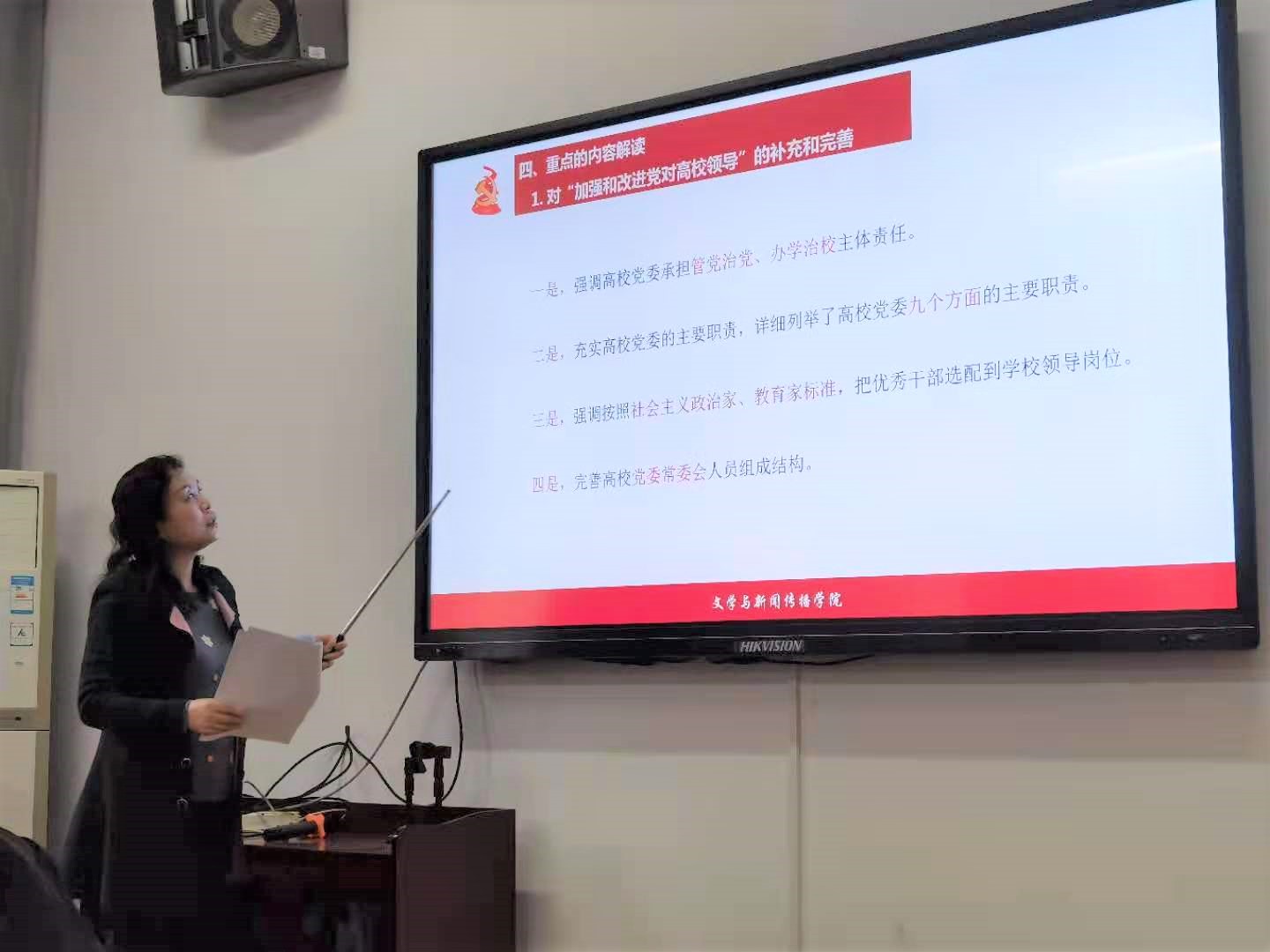 为深入贯彻党的教育方针、落实立德树人的任务要求,2021年4月26日下午,我院党委组织全体党委委员、支部书记及支委在文法楼230会议室进行《中国共产党普通高等学校基层组织工作条例》专题培训,学院党委副书记邓栗同志授课。