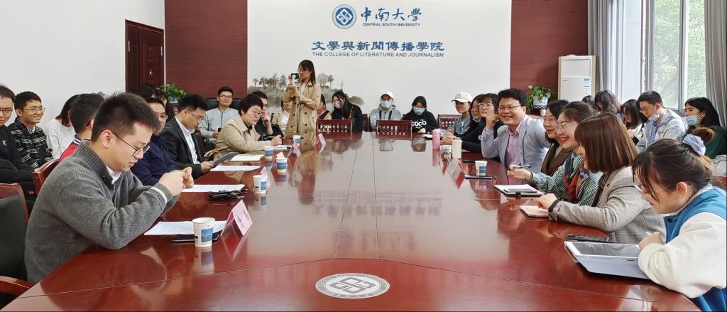 4月26日上午,陕西师范大学新闻与传播学院刘蒙之教授、周利荣副教授带领2018级编辑出版系学生来我院见习调研,双方围绕专业学习、实习实践、升学就业等学生密切关注的问题进行交流探讨。本次交流座谈会在文法楼230会议室召开,我院陈国雄副院长、传媒系易龙主任、凌菁副主任、学工办唐苗主任参加会议,会议由数字出版专业刘玲武老师主持。