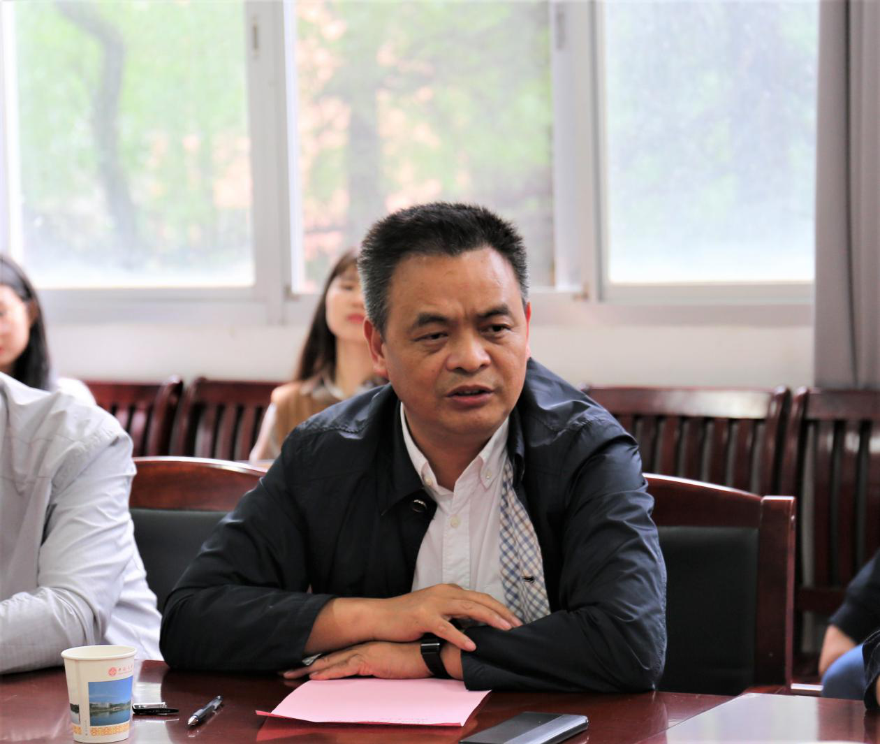 学院党委书记罗军飞介绍了文新院课程思政建设基本情况。他指出,文新院高度重视课程思政建设工作,持续探索课程思政建设途径,紧紧围绕习近平总书记提出的“培养什么人、怎样培养人、为谁培养人”这一教育工作的根本问题,结合学院学科发展基础和实际,全力培养德智体美劳全面发展的社会主义建设者和接班人。他提到,学院高度重视教师课程思政意识和思政能力的培养,鼓励和引导学院教师在科研中探索和挖掘课程思政资源,在课堂中渗透思政教育。文新院还开展了丰富的学生活动,在课堂内外培养有温度、有担当、有责任的学生,引领学生树立正确的价值观念。