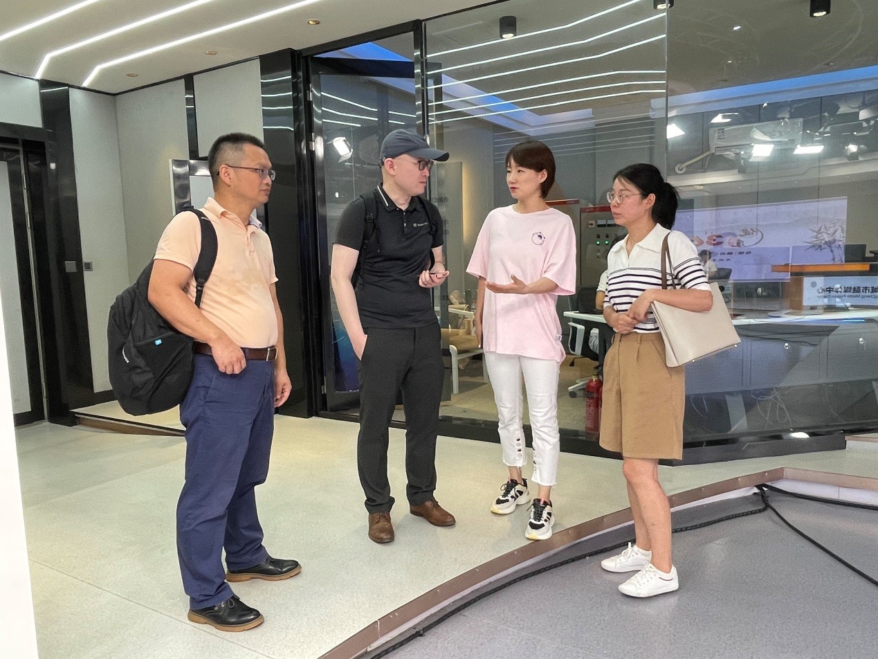 接着,课题组参观了项城市融媒体中心360度全景演播室、节目制作中心、编发中心、媒资中心以及传习广播直播室等,与相关业务人员就项城融媒体中心的医疗产业宣传模式和节目制作模式等展开深度交流。