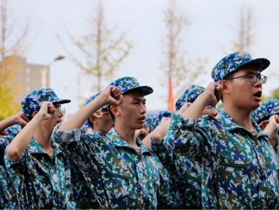 最后,各连指导员、教官与军训新生合影留念,记录下了这宝贵的瞬间。继往开来,鉴古知今。金甲铿鸣,悬剑以警。这是新生入学爱国教育的重要一课,增强了新生对国史、党史的认知与了解,更是鼓舞了同学们传承伟大抗战精神,一往无前、接续奋斗的勇气。