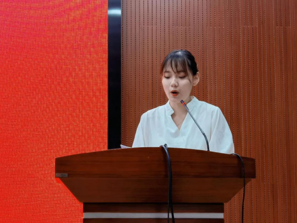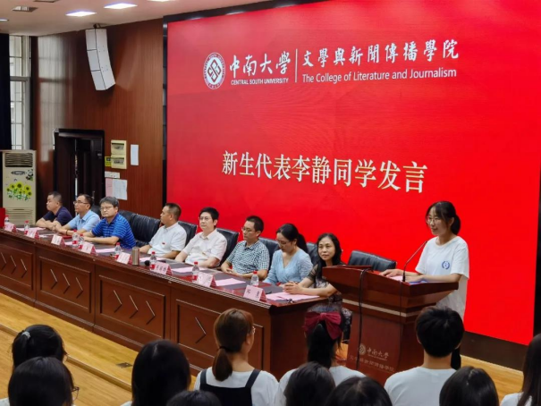 新生代表李静代表全体21级新生在典礼上发言。她表示,漫步在美丽的中南校园,感受到文新院深厚的文化底蕴与浓郁的人文关怀,让她对这个学院多了一份归属感,多了一份赤诚的热爱。同时,她也代表新生向默默付出的学院领导、老师、学长学姐们表示了由衷的感谢。“既生逢盛世,当肩负重任”,她呼吁同学们把握校园时光,养成良好学习习惯,谨记习近平总书记的嘱托,以坚定意志实现人生目标,成就更好的自我。