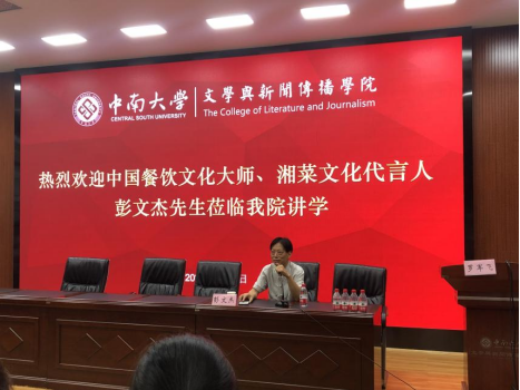 讲座伊始,彭文杰先生以罗军飞书记提到的“文化”应当成为“当代大学生的精神家园”为切入点,结合新生初来乍到对长沙美食的新鲜感,将地域文化与湘菜特色融合,解释了自己认为“味在长沙”的原因。他以马王堆汉墓、道县玉蟾岩的故事为例,指出长沙的美食有很深的历史渊源,接着他再举出“楚辞之祖”屈原在《招魂》里大肆描写稻粢穱麦等场景的例子,再度验证湖南美食文化源远流长。