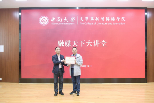10月12日上午,“融媒天下”大讲堂第三讲讲座在我院222会议室举行,浙江长兴县融媒体中心总编辑王晓伟一行和宁夏贺兰县融媒体中心主任马贤一行应邀莅临我院开展讲座。本次讲座由我院传媒系主任易龙主持,院党委书记罗军飞、院长白寅、副院长刘新少等院领导出席会议。
