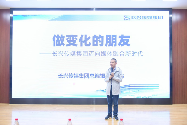 上午讲座伊始,王晓伟先生简要介绍了长兴传媒集团的基本情况和基本架构,并重点介绍了集团媒体融合跨越发展的七条路径。
