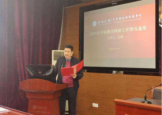 白寅院长通报了我院2021年教学科研工作情况。他说,学院的教学科研、课程思政、人才培养等方面发展势头良好。我们要把握住伟德国际官方入口人文学科发展的重大契机,以建设研究机构为抓手构建强劲学术团队,勠力同心,斗志昂扬,实现跨越式发展,在文新院组建20周年之际交出丰硕且值得骄傲的答卷。