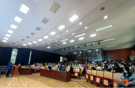 潘开政教授接下来用《觉醒年代》、《1921》等掀起全国马克思主义学习热潮的影视节目向在座师生表明2021年度时政关键词为马克思主义,引起大家强烈共鸣。马克思主义是我们立党立国、兴党强国的根本指导思想,是我们党的灵魂和旗帜。天下媒体不分大小,都需要在新时代切实践行马克思主义新闻观。新闻媒体从业者应锻炼自己的脚力、眼力、脑力和笔力,坚持以人民为中心的导向,以马克思主义新闻观指导重大报道策划。