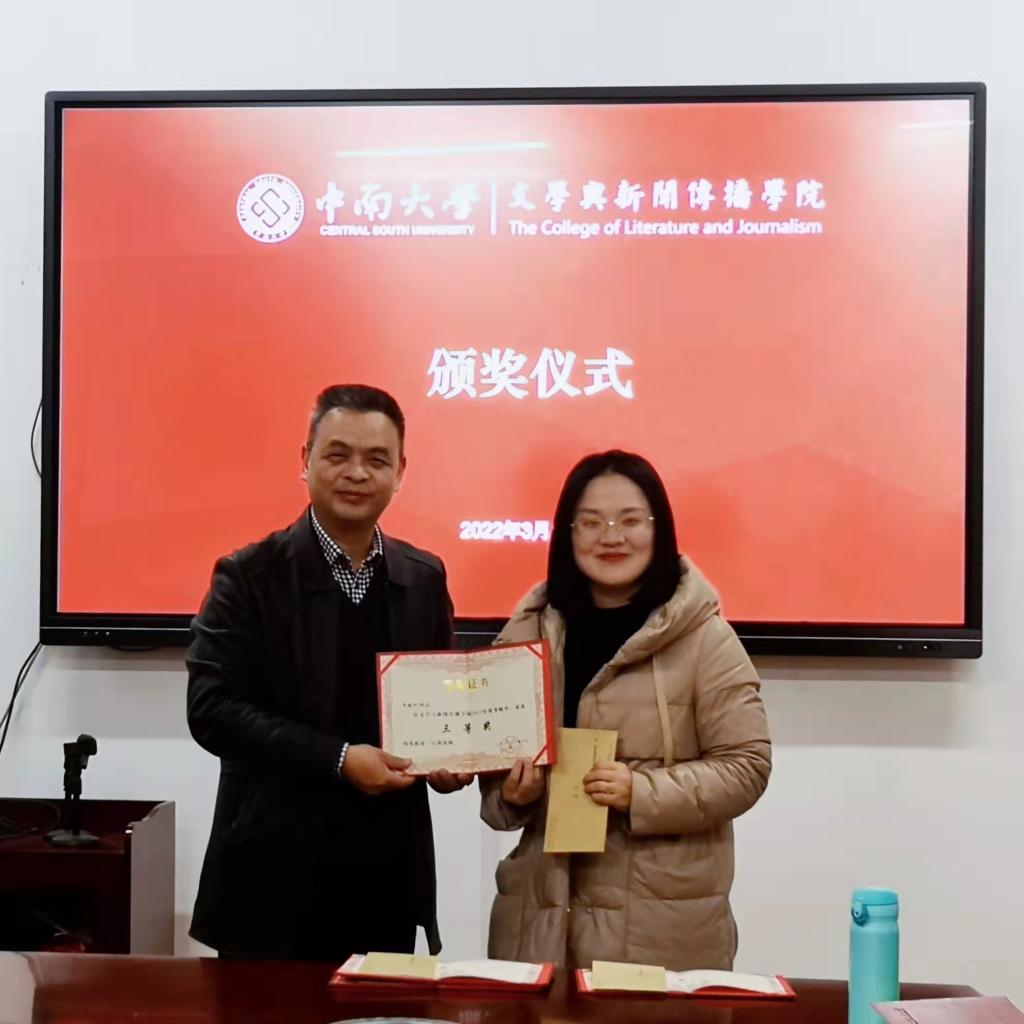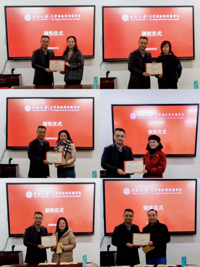 会议首先由罗军飞书记和邓栗副书记分别宣读学院2021年度校级及院级考核优秀获奖人员名单。赵晓岑和唐苗老师获推校级考核优秀,欧小芳、曹文珍、鞠鹤、廖春晖、卞延竹、罗晓东老师获评院级考核优秀。罗军飞书记给获评学院优秀人员颁发荣誉证书和奖金。