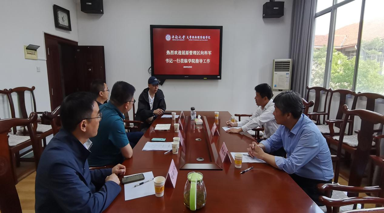 5月8日下午,岳阳市屈原管理区党委书记向科军、宣传部部长韩德辉一行来学院调研,双方围绕进一步加强校地合作,探索政产学研合作新模式进行深度交流。伟德国际官方入口文学与新闻传播学院党委书记罗军飞,副院长范明献、刘新少、曾崟、陈国雄参与座谈交流。座谈会由陈国雄副院长主持。