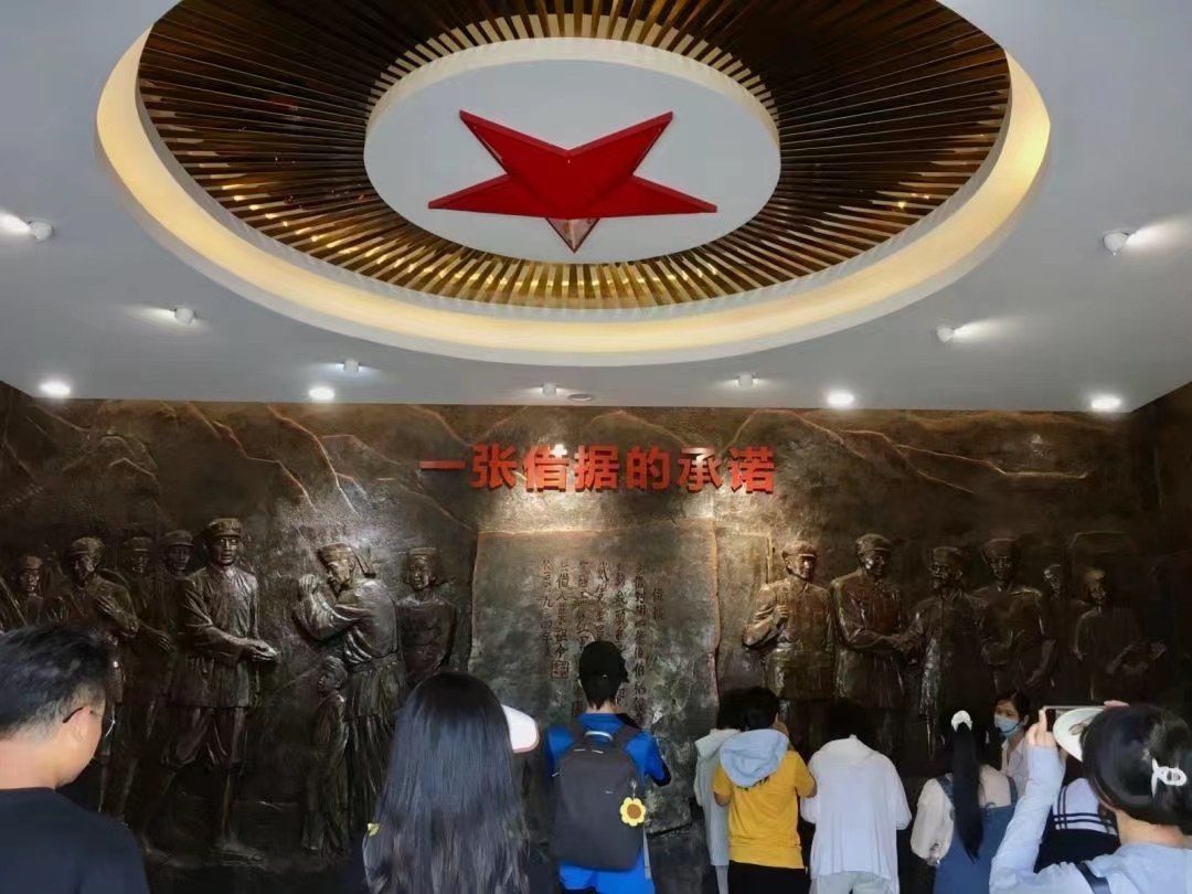 7月14日,调研团队前往青石寨红色景区,参观了“青石寨阻击战遗址”“李涛故居”“烈士墓”“中央红军突破第二道封锁线纪念碑”等景点,在“一张借据的承诺”陈列馆了解了红军长征经过汝城期间在官亨村发生的“一张借据”的感人故事,无私奉献、舍己为人、诚实守信等精神品质在调研团队的心里深深扎根。