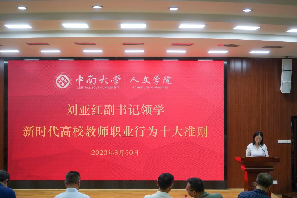 大会第二阶段由刘亚红副书记领学新时代高校教师职业行为准则及开展警示教育,她强调,要巩固师德师风建设成果,维护教师队伍良好形象,从宣传意识形态领域进行相关舆情预警,为新学期各项工作顺利开展做好准备。
