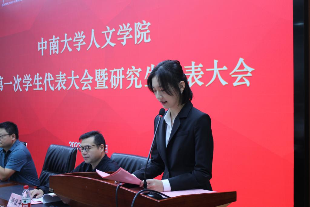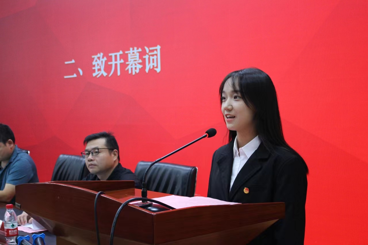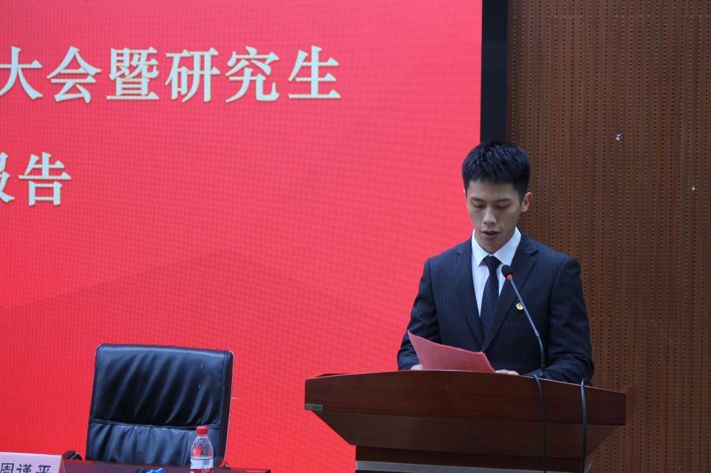 大会筹备委员会代表程萌致开幕词。她总结回顾了上一年度我院学生会、研究生会工作经验,并呼吁学生干部们挺起理想信念主心骨,练好服务同学基本功,接稳建设学校接力棒。