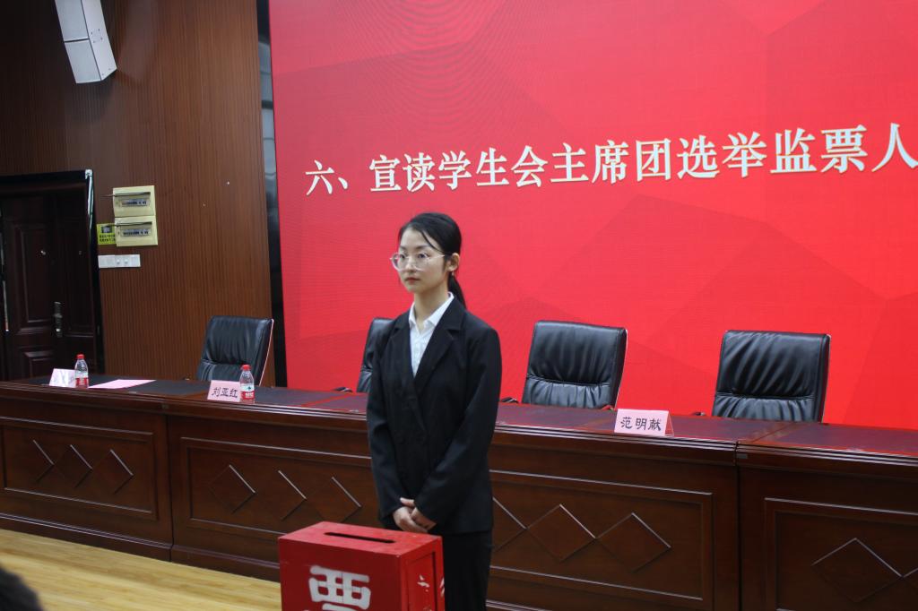当选的第一届学生会主席团成员孙晓冉致闭幕词。她代表大会筹备委员会对校团委和学院党政领导的亲切关怀和指导表示衷心的感谢,并向全体当选代表表示热烈祝贺。