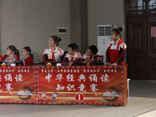 比赛分必答题(个人必答、团队必答)、抢答题、风险题三个轮次进行,共有8支代表队参加,以团队形式展开角逐。不论是上下句对接,还是相关知识问答,或是整首诗背诵,小选手们大都游刃有余,脱口而出,展示了选手对传统国学经典知识的积累。比赛过程中,还穿插了《重回汉唐》《竹·韵》《经典诵读+武术操》《论语》诵读情景剧、诗词朗诵《望庐山瀑布》等富有浓厚传统文化韵味的节目表演。互动环节中,两个不满6岁的幼儿园的小女孩现场接受挑战,随机抽取背诵国学经典更是赢得了在场学生的由衷赞叹。经过三轮竞赛和加时角逐,沱江镇第四小学代表队脱颖而出,夺得本次竞赛一等奖,沱江镇第七小学、江华芙蓉学校获得二等奖,江华博雅实验小学等5支代表队获得三等奖。