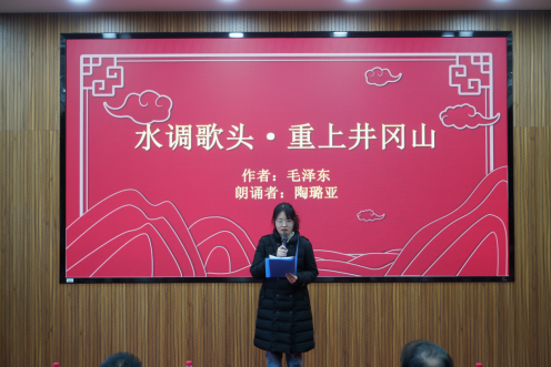 在诗词朗诵环节,主要包括《水调歌头·重上井冈山》《下雪的早晨》《回延安》《望星空》《在一块新品上触摸祖国》《新年赞新工程》《穿石坡湖》《草海》《湖南颂》等节目,其中,既有艾青、贺敬之和郭小川等人的经典诗篇,又有当代实力诗人梁尔源的作品,以及伟德国际官方入口何继善院士和伟德国际官方入口师生代表的作品。