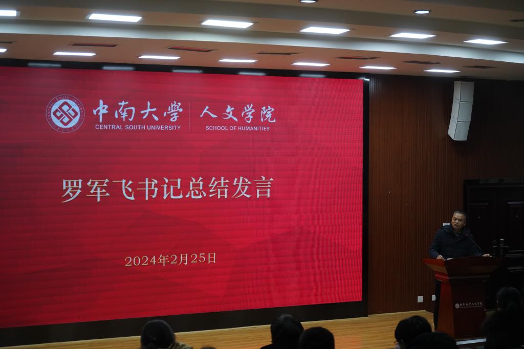 学院党委书记罗军飞对会议做出总结,他表示,2023年,学院实现了学科平台上的突破,2024年是建好平台的开局之年,大家要为平台的垒高做出自己的贡献。罗军飞指出,学院哲学、中国语言文学两大一级学科要继续建强,任务艰巨,要从领军人才、重大项目、队伍规模等方方面面努力;要重视本科教育,建设好本科专业,围绕立德树人的根本目标培育卓越拔尖人才;校地合作要落到实处、产生效益,要增强学院自身造血功能;党建引领作用要凸显,党史学习工作条例已发布,全面从严治党永远在路上。