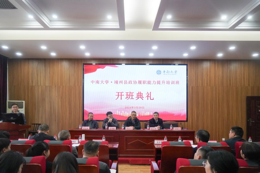 罗军飞向自靖州县政协领导及培训班学员表示了欢迎。他指出,此次培训班的开班,是学院“扎根三湘四水、服务三高四新”的举措,是学院在社会服务领域走出的重要一步,他向各位学员表达了祝福和期望,希望各位学员学有所成、学以致用。