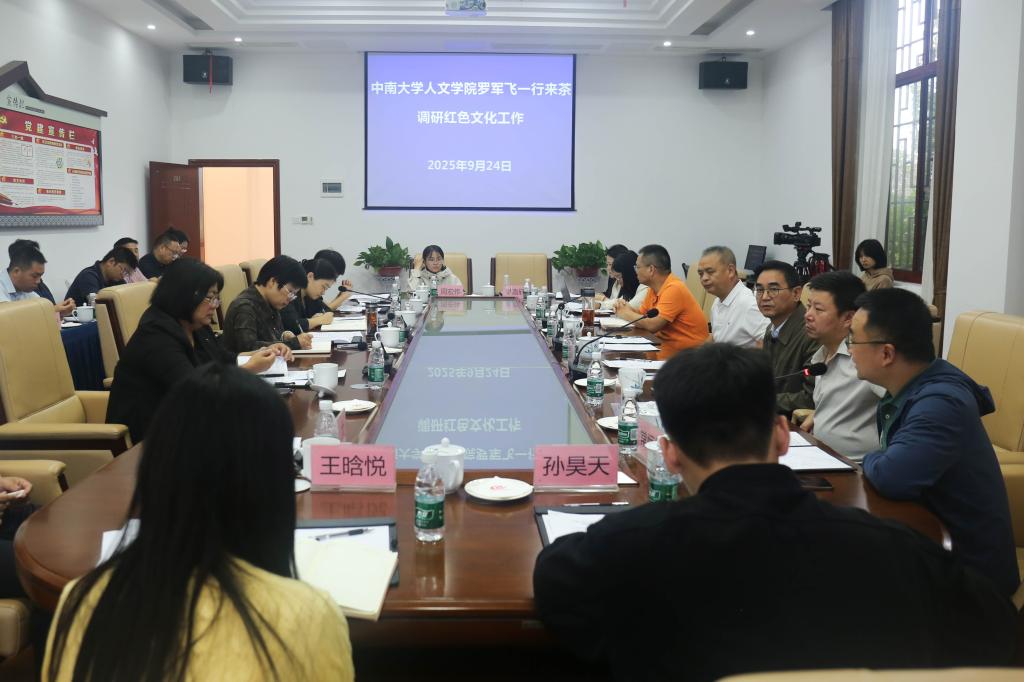 9月24日上午,我院党委书记罗军飞率队前往茶陵调研红色文化工作,并于茶陵县工农兵政府旧址游客中心召开红色文化调研座谈会。本次座谈会上,副院长刘新少、传媒系教授盛虎、中文系副教授常恒畅、传媒系副教授孙桥、伟德国际官方入口楹联研究所副所长余晋禧和中文系副系主任贺天琪就茶陵红色文化的建设发展情况展开交流谈论,积极建言献策。茶陵县常委、县委宣传部部长李甜甜,县政协副主席、文联主席刘小琴等单位领导参会。
